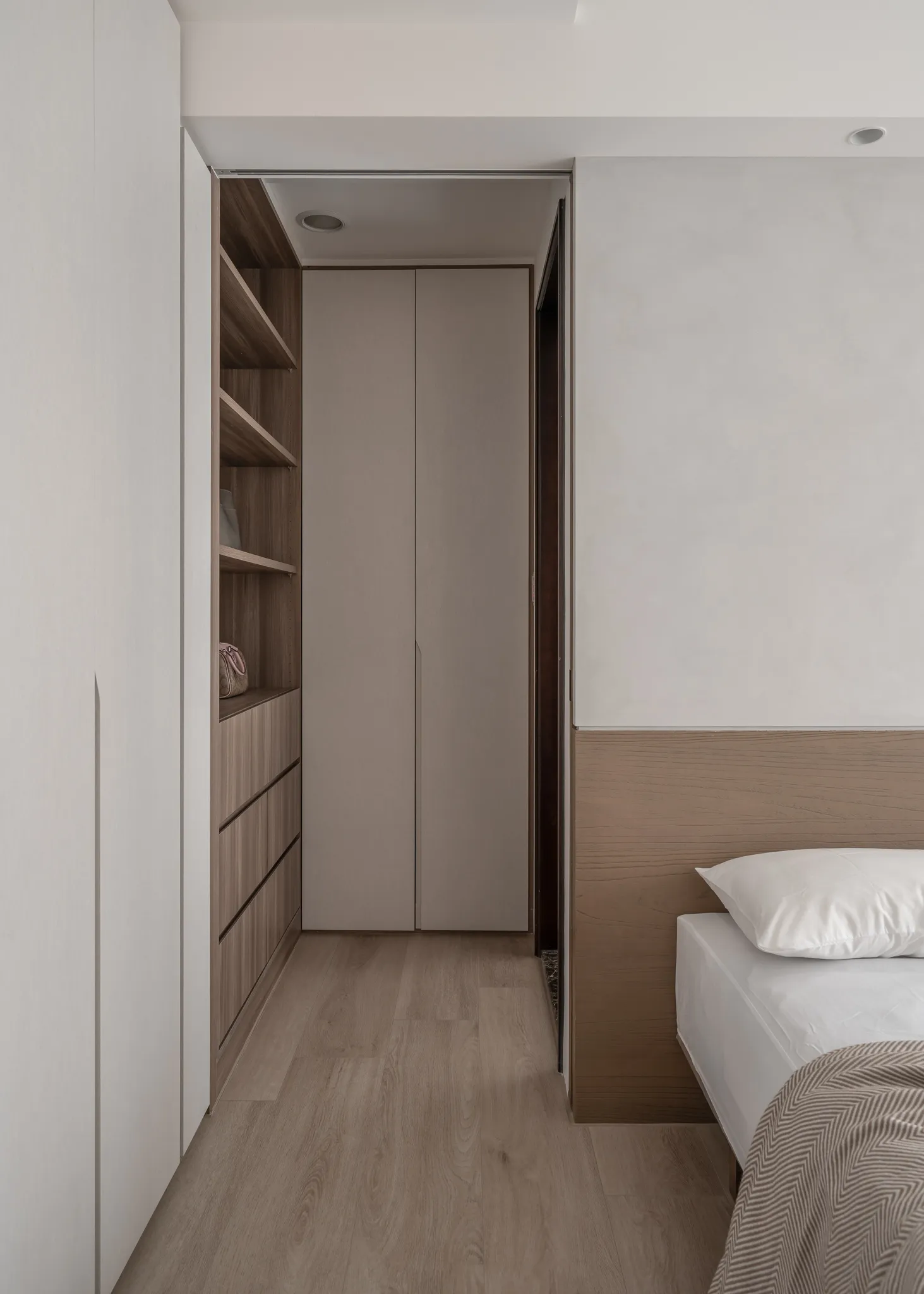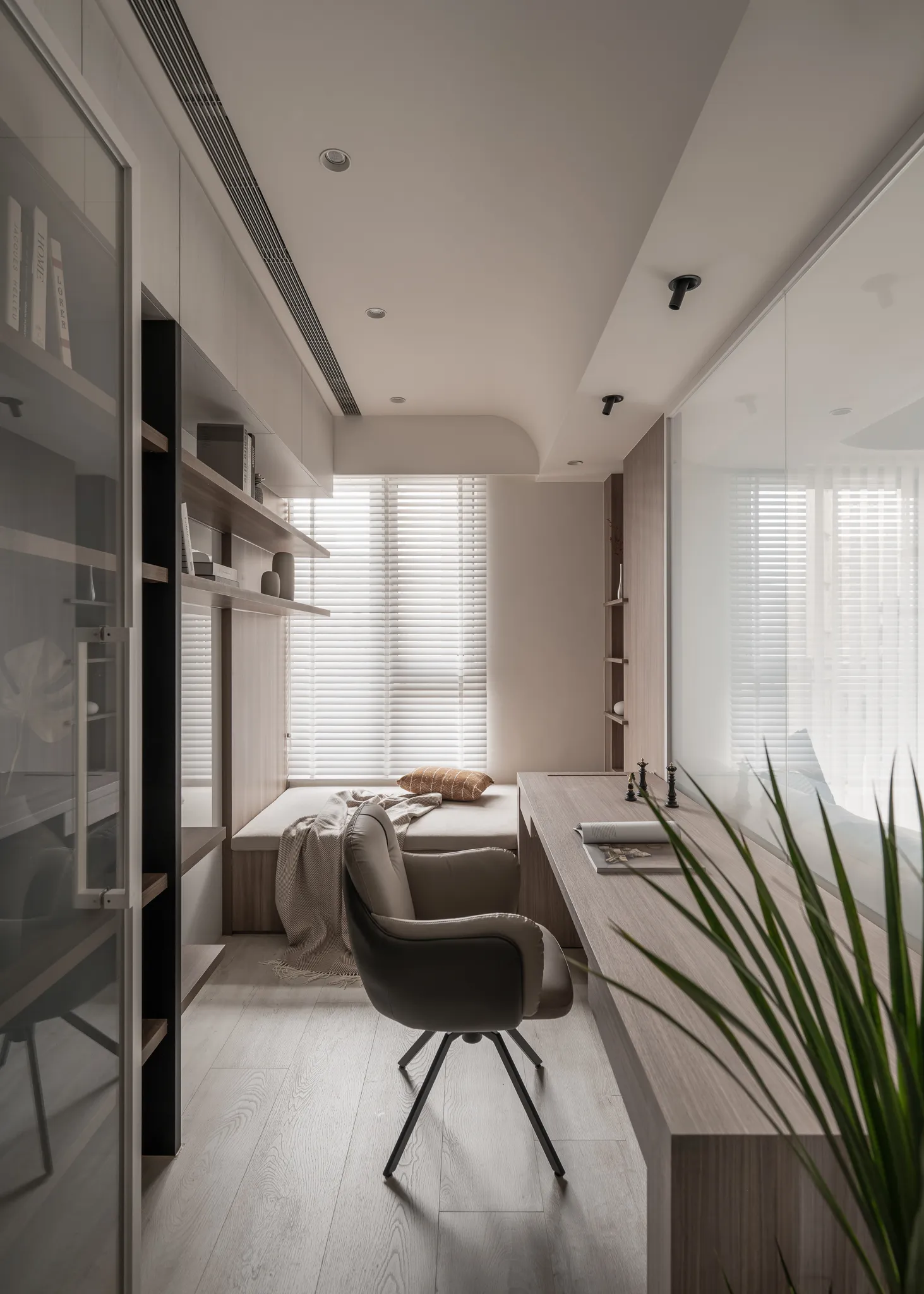 兩條廊道軸線為空間的隱形坐標刻寫著家庭空間與私人領域,「Urban Curve」用流動的線條與模組化的秩序,建構出一種「可以慢下來」的美學。它提醒我們:家的價值,並不在於面積大小或裝飾華麗,而在於它是否能給予靈魂喘息的空間。